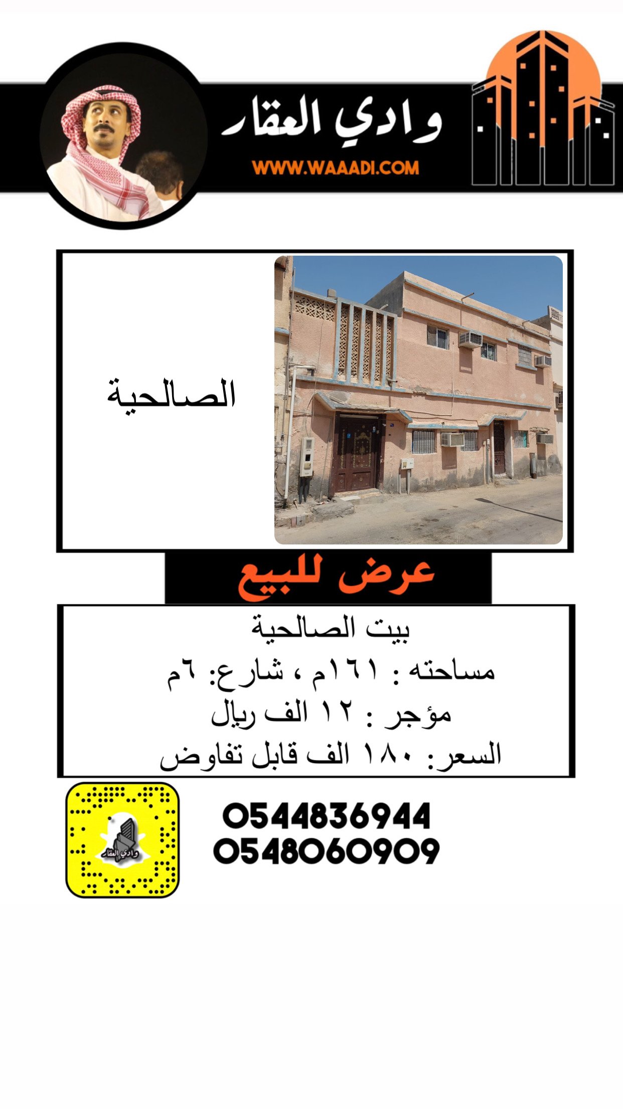 المساحة 161 م شارع 6م بيت في الصالحية مساحة ١٦١ م شارع ٦م مؤجر بـ ١٢ ريال السعر قابل التفاوض 180,000 ريال المشاهدات 83
