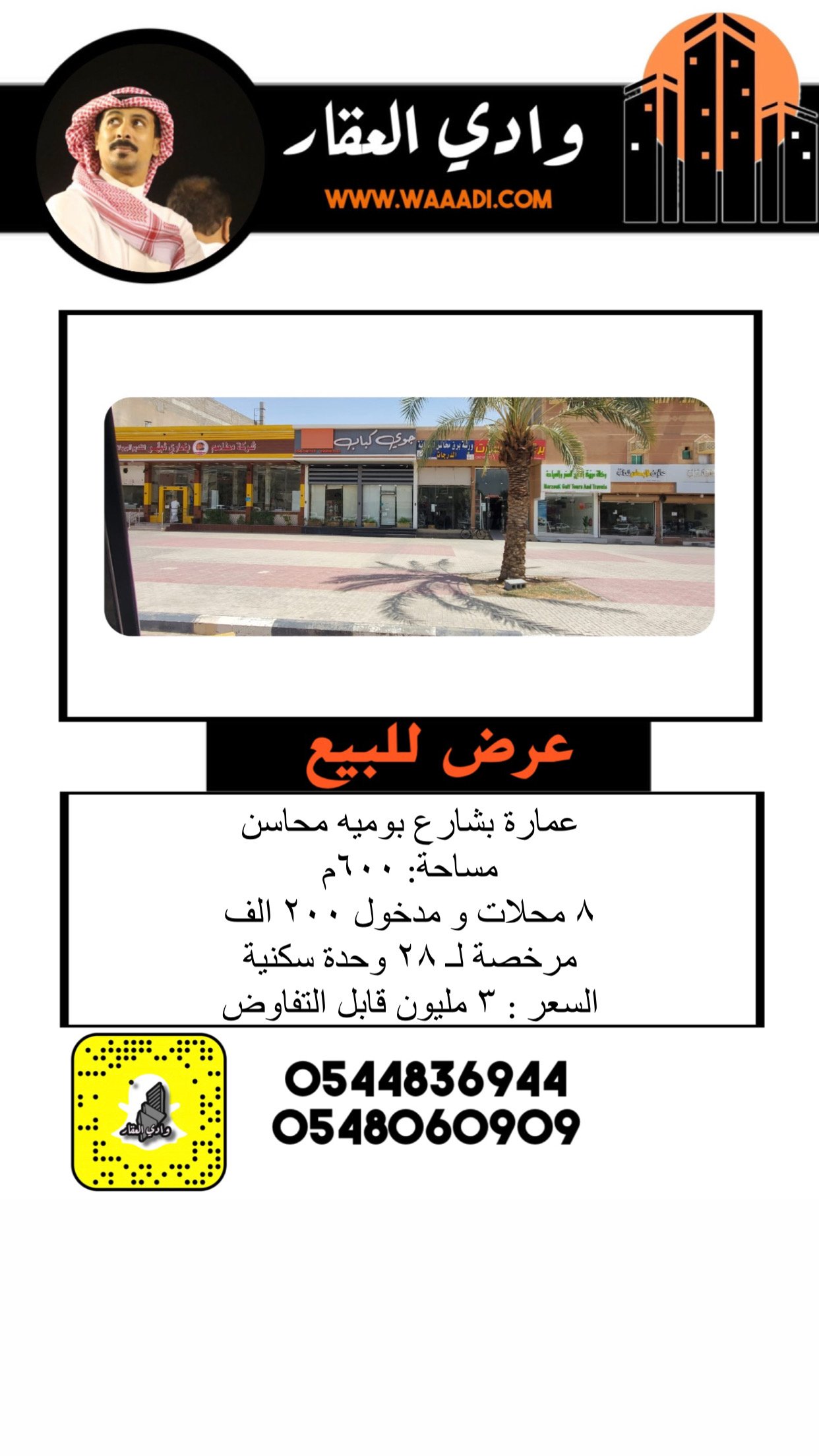 المساحة 600 م شارع 100 عمارة تجارية ٣٠٠م ارضين اجمالي ٦٠٠م وخلف شارع: ٨م ٨ محلات ومدخول ٢٠٠ الف مرخصة ٢٨ وحدة سكنيه السعر قابل التفاوض 3,000,000 ريال المشاهدات 19