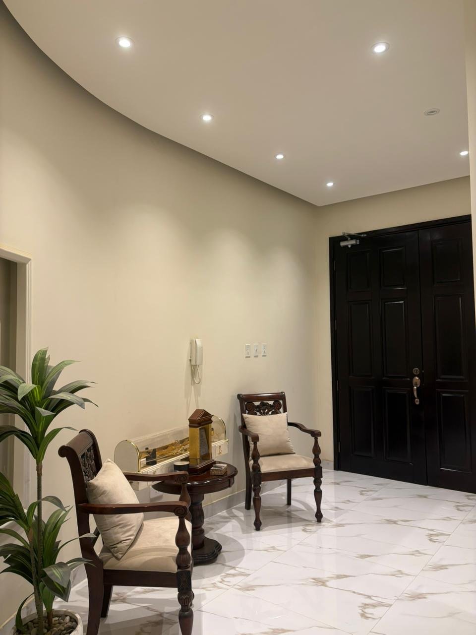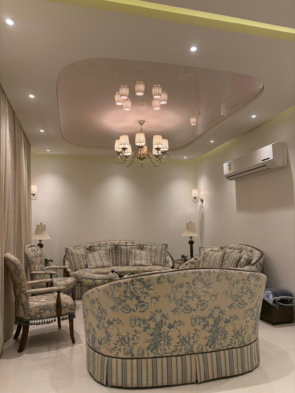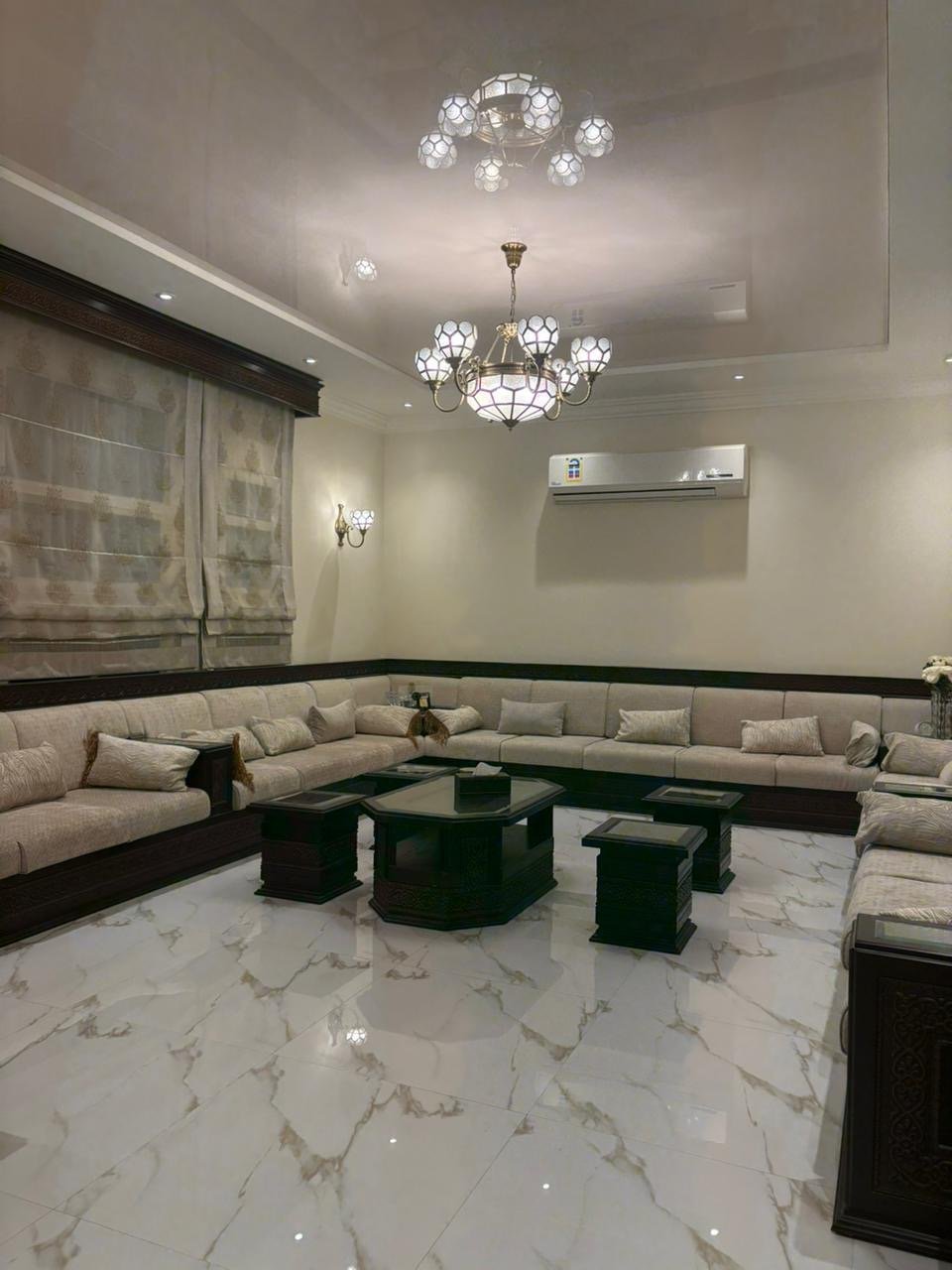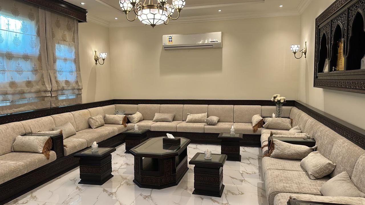 صالة كبير-خمس غرف نوم + واحده ماستر وكل غرفتين بينهم حمام تصلح تكون أجنحة +غرفة للأطفال