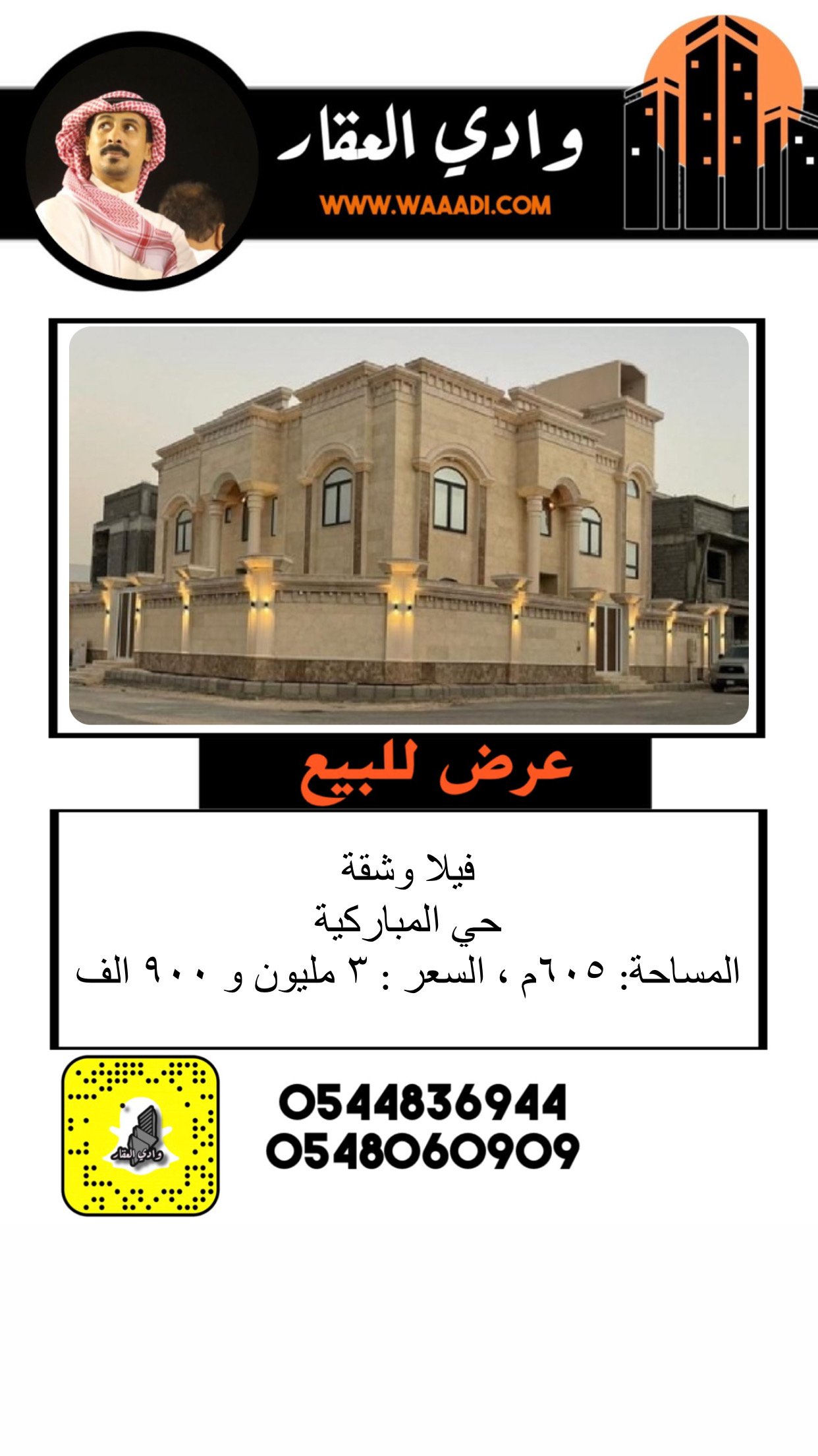 المساحة 605م |