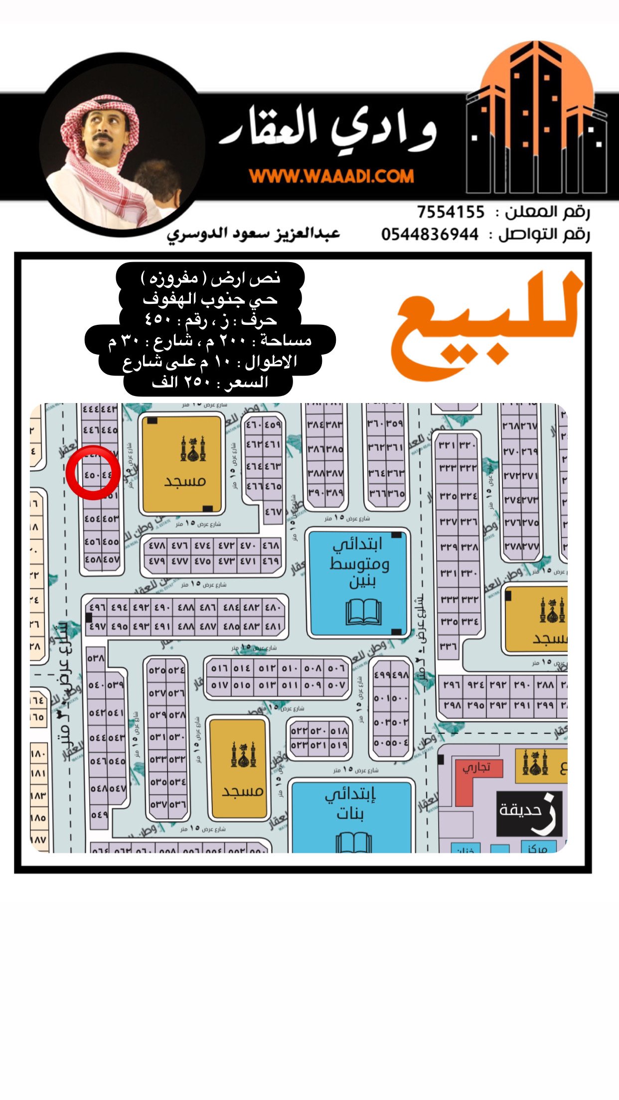 أرض للبيع في جنوب الهفوف 450/2 ز