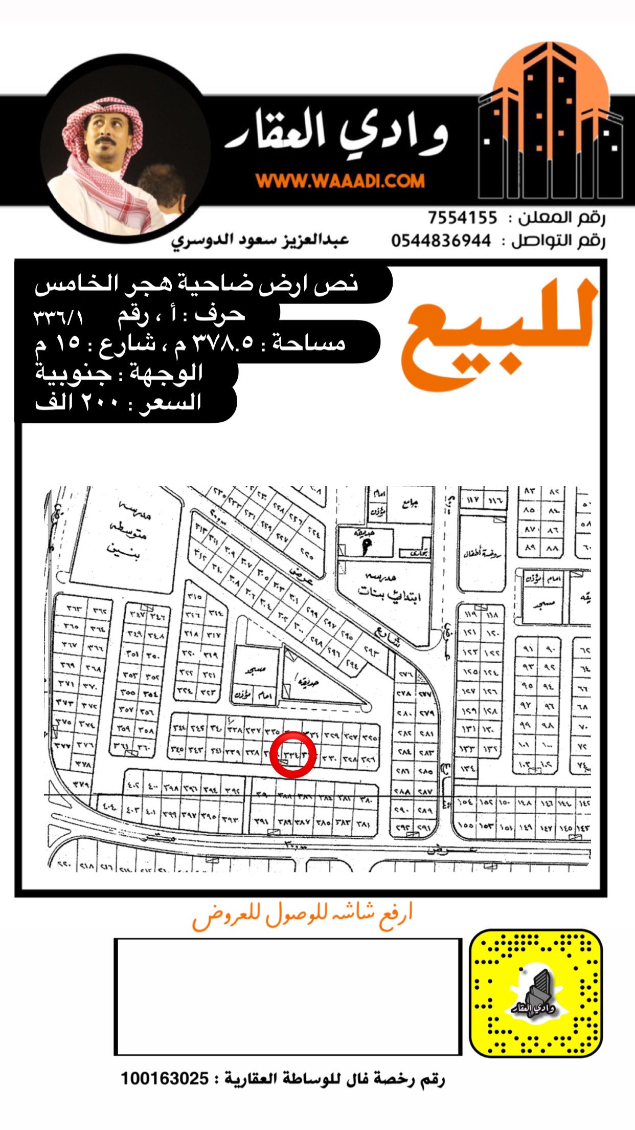 أرض للبيع في الضاحية الحي الخامس 336/1 أ