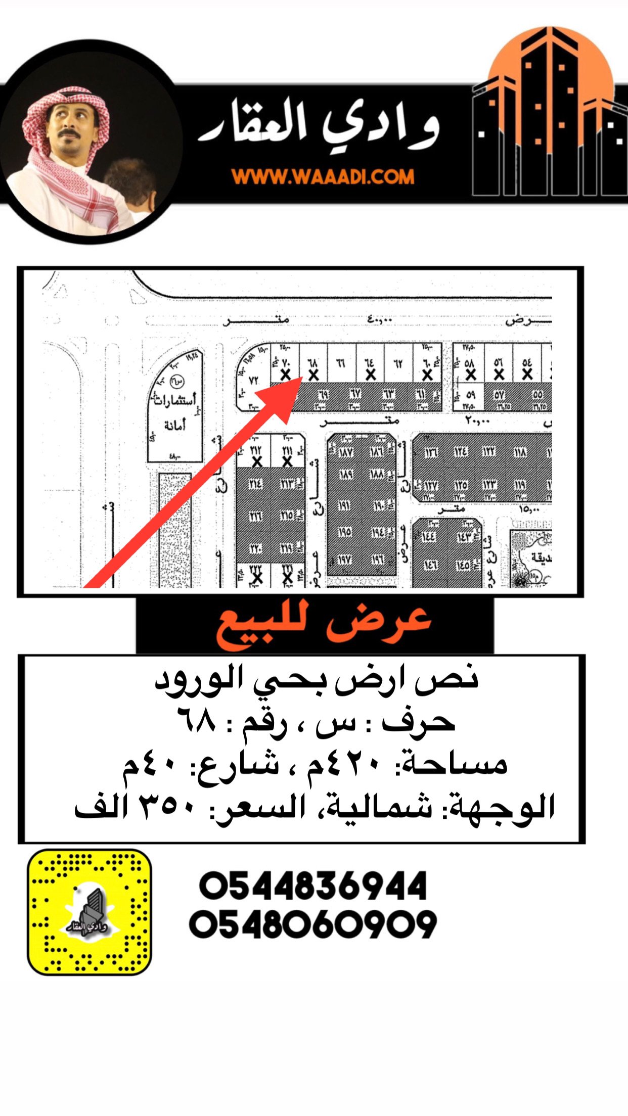 أرض للبيع في الورود 68/1 س