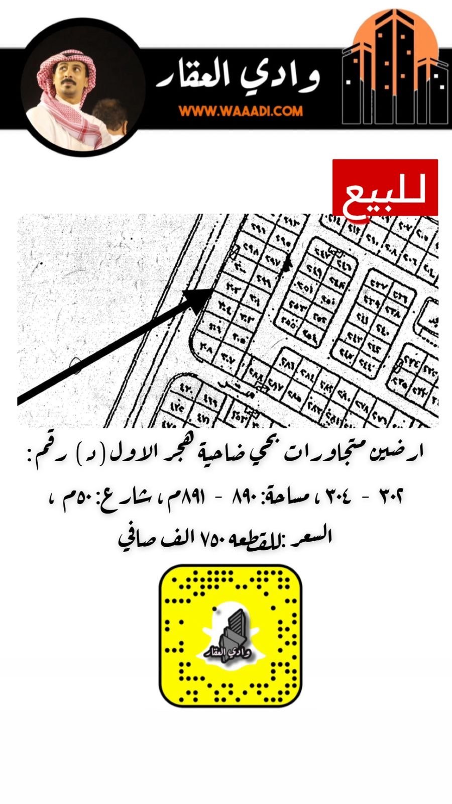 أرض للبيع في الضاحية الحي الاول 302 - 304 د
