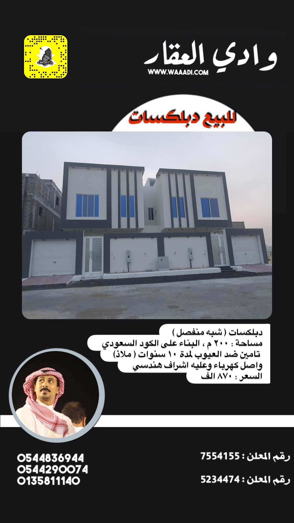 المساحة 200م شبه منفصل |