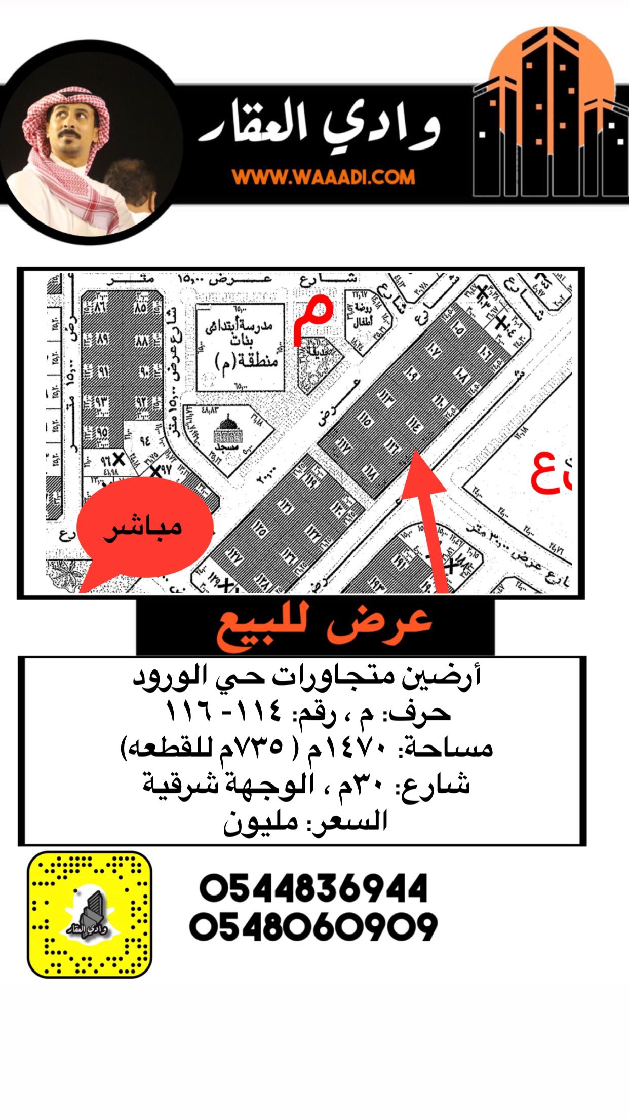 أرض للبيع في الورود 114 -116 م