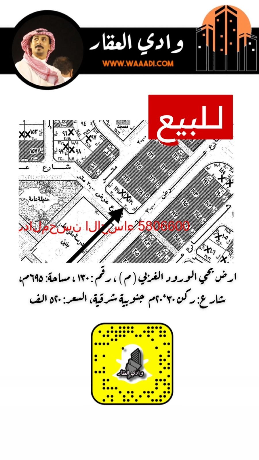 أرض للبيع في الورود 130 م