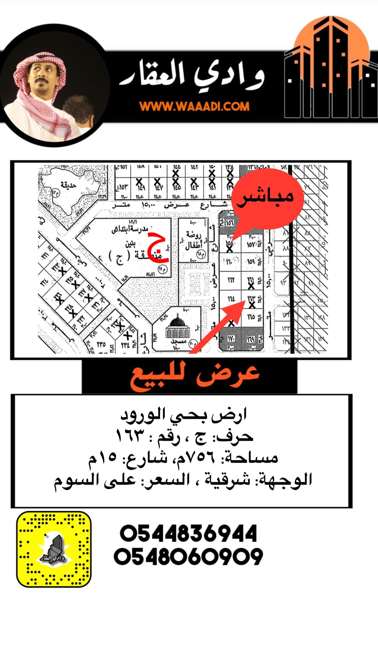 أرض للبيع في الورود 163 ج