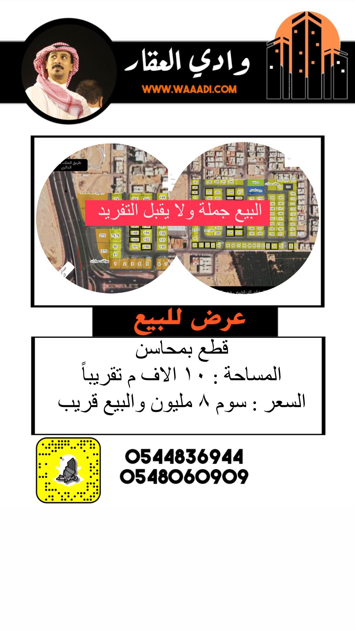 المساحة 10,000 م مجموعة قطع بحي محاسن بمساحة ١٠ الاف متر ، غير قابل التفريد السوم 8,000,000 ريال المشاهدات 37